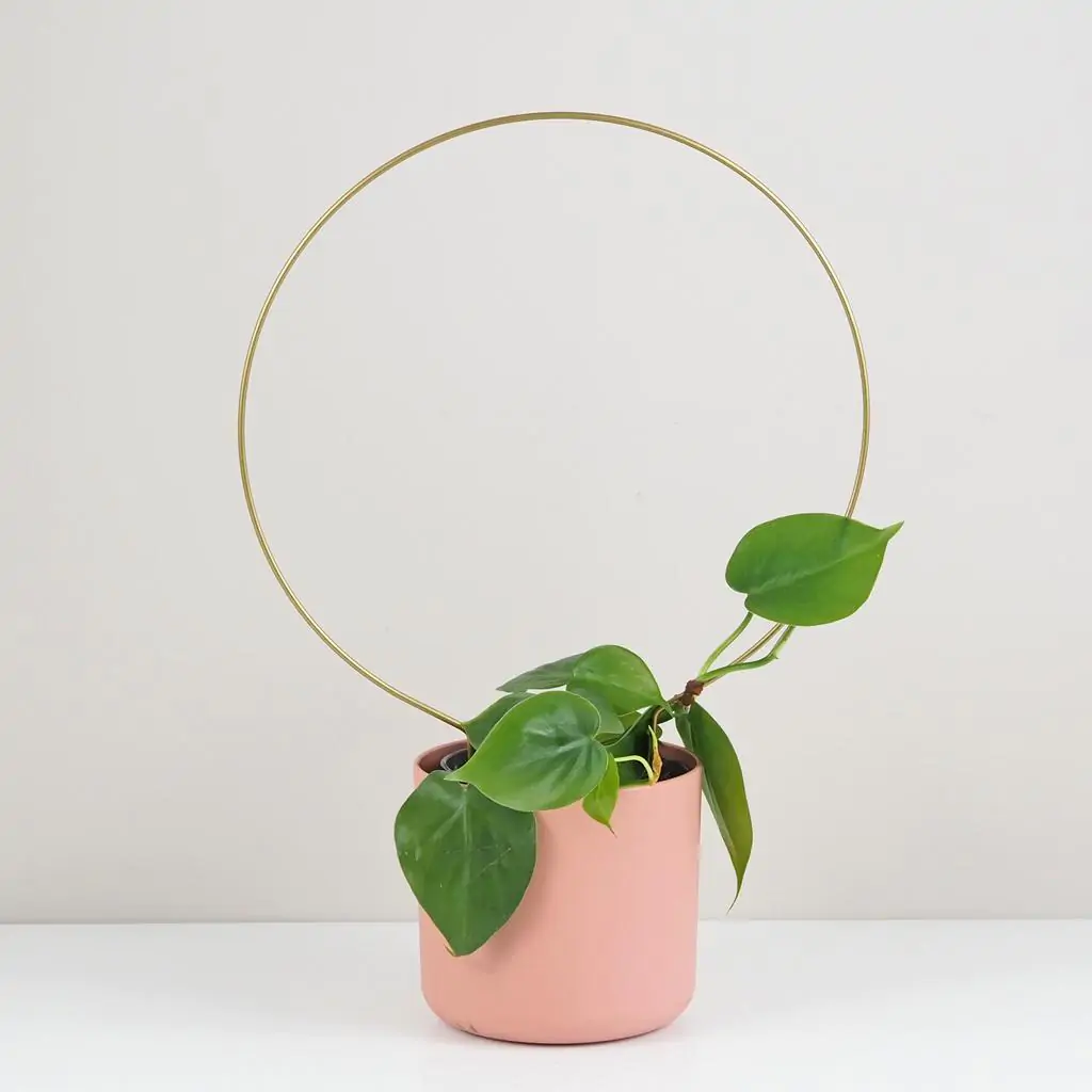 Tvar velkého kruhu je nejen estetický, ale i praktický – výhonky visící rostliny se mohou snadno ovíjet kolem kruhů nebo se rostliny s více stonky mohou prakticky opírat o strany kruhu. Výška opory je 38 cm, takže se hodí do většiny květináčů pro běžné pokojové rostliny. Je ideální pro druhy jako Monstera adansonii, filodendrony, pothosy, syngonium, hoye, ale také pro mírně svěšené maranty, které potřebují jen jemnou oporu.