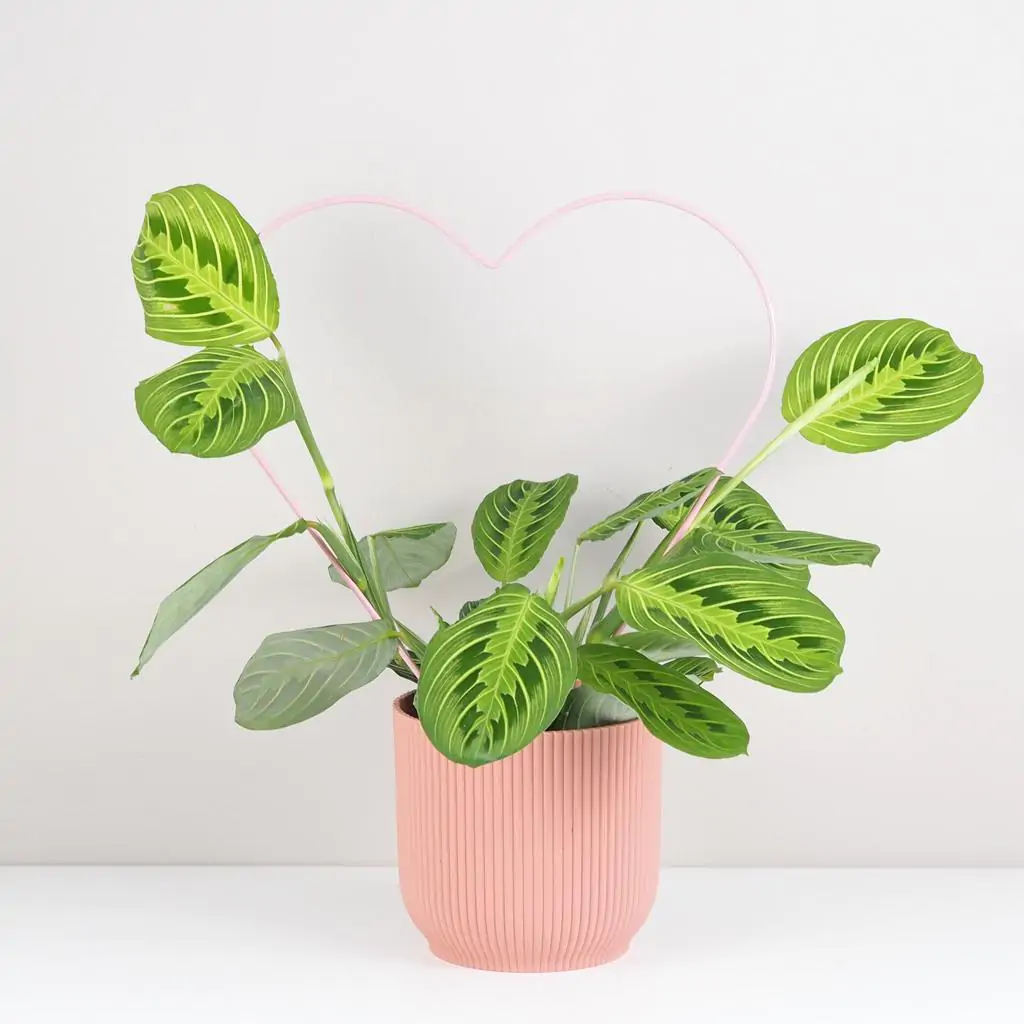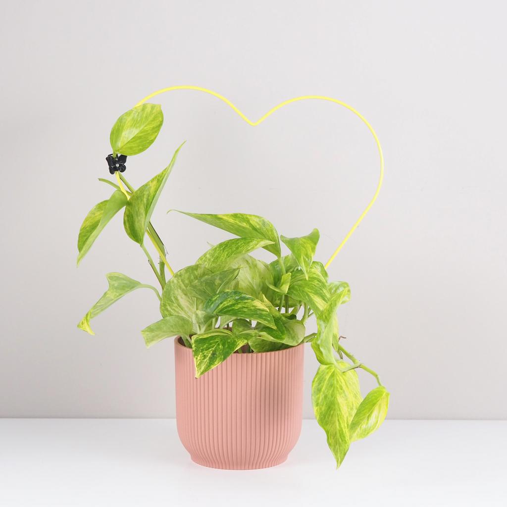 Tvar srdce je vizuálně výrazný, ale zároveň decentní – rostlina se může opírat o oblouky podpěry nebo sa okolo nich omotat a vytvářet tak zajímavou kompozici. Výška podpěry je 35 cm, takže se hodí do většiny květináčů pro běžné pokojové rostliny. Je ideální pro druhy jako Monstera adansonii, filodendrony, pothosy, syngoniums, ale také pro mírně svěšené zamiokulky nebo aglaonemy, které potřebují pouze jemnou oporu.