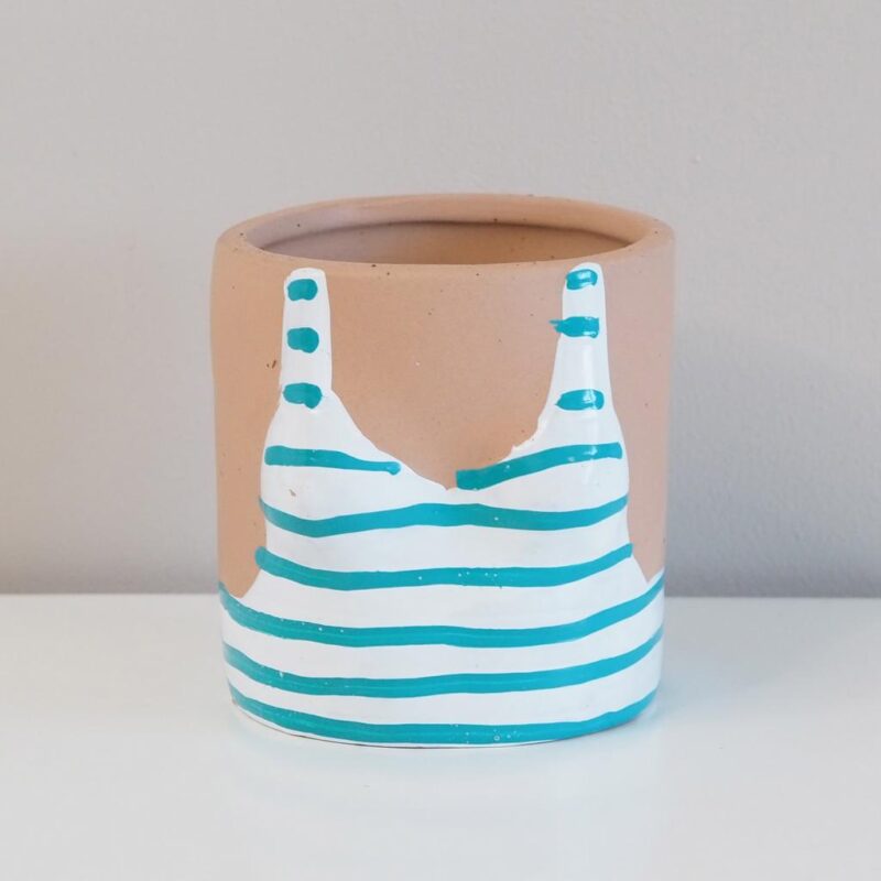 Milý keramický květináč plavky Domaša se výborně hodí do domácností malých i velkých milovníků rostlin. Je vhodný pro menší pokojové rostlinky. Skvěle v něm vyniknou malé kaktusy a sukulenty a táhlé druhy jako fíkus pumila či peperomia prostrata. Bude krásnou dekorací vašeho interiéru a celoročně do něj vnese letní pohodu.