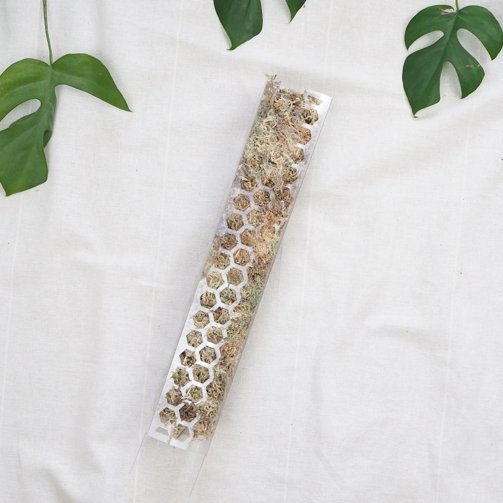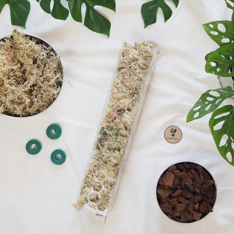 Opora na rostliny se naplní rašeliníkem, ze kterého si rostliny po přerostnutí kořeny do opory budou umět nasávat vláhu. Rašeliníkové tyče umožňují rostlině růst stabilně, čímž pro ni vytvářejí optimální podmínky. Rašeliník výborně zadržuje vodu, čímž pomáhá udržet ideální mikroklima kolem kořenů a snižuje potřebu častého zalévání. Tyče jsou praktické, protože je lze doplňovat a prodlužovat podle růstu rostliny.