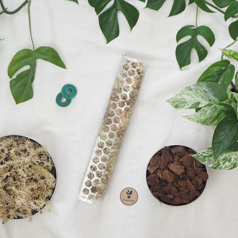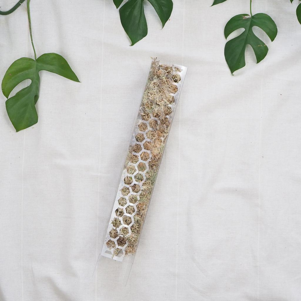 Opora na rostliny se naplní rašeliníkem, ze kterého si rostliny po přerostnutí kořeny do opory budou umět nasávat vláhu. Rašeliníkové tyče umožňují rostlině růst stabilně, čímž pro ni vytvářejí optimální podmínky. Rašeliník výborně zadržuje vodu, čímž pomáhá udržet ideální mikroklima kolem kořenů a snižuje potřebu častého zalévání. Tyče jsou praktické, protože je lze doplňovat a prodlužovat podle růstu rostliny.