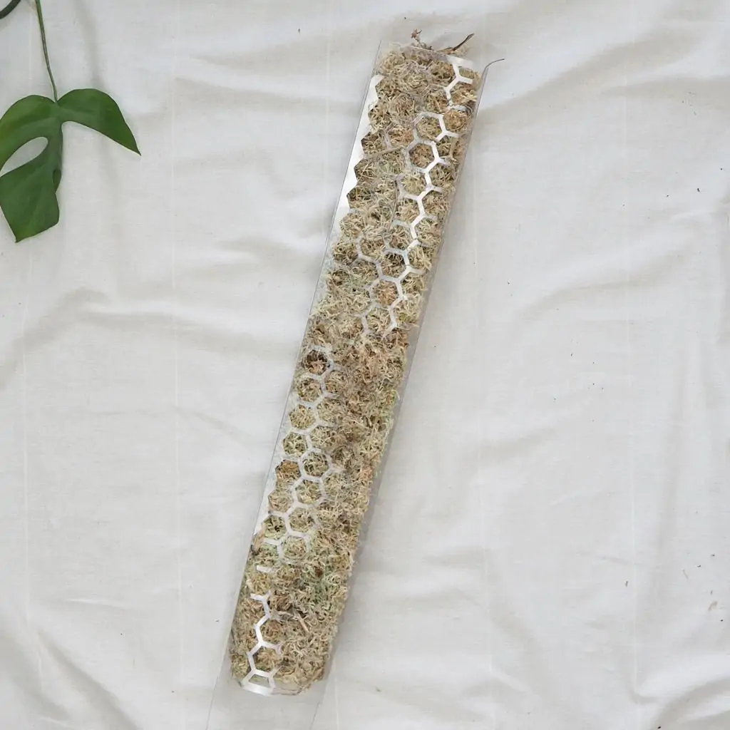 Opora na rostliny se naplní rašeliníkem, ze kterého si rostliny po přerostnutí kořeny do opory budou umět nasávat vláhu. Rašeliníkové tyče umožňují rostlině růst stabilně, čímž pro ni vytvářejí optimální podmínky. Rašeliník výborně zadržuje vodu, čímž pomáhá udržet ideální mikroklima kolem kořenů a snižuje potřebu častého zalévání. Tyče jsou praktické, protože je lze doplňovat a prodlužovat podle růstu rostliny.