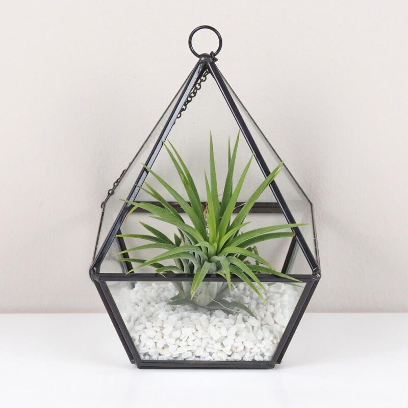 Vitrážové terárium se zelenou tillandsií